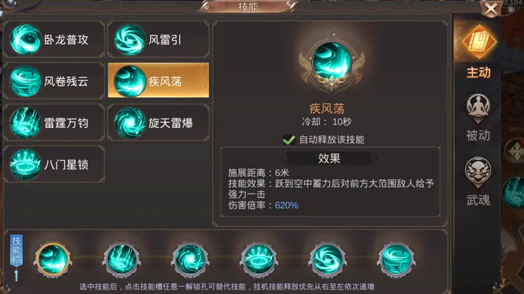 技能效果:召唤出风雷法阵,对阵中多名目标造成多段伤害