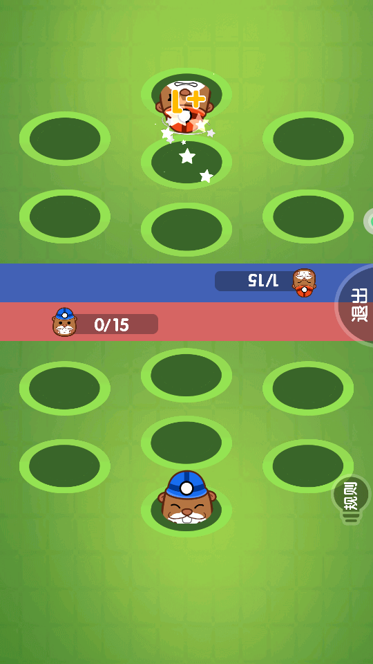 3、对战时点击己方洞口角色,抢占绿圈,帮蓝方积累【0/15】→15分,击败对手。