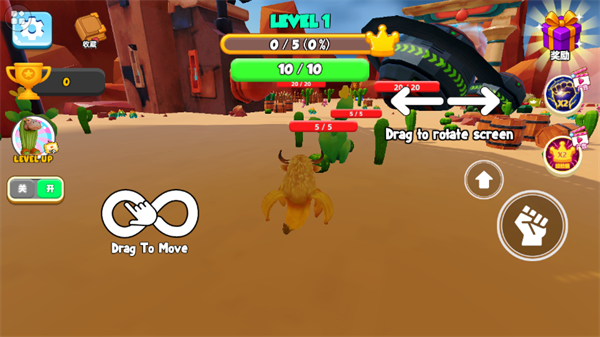 2、进入游戏后滑动屏幕可控制方向和移动;