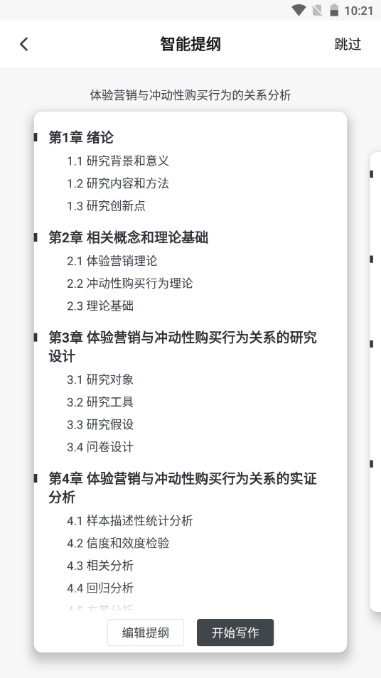 2、然后软件就会为用户生成提纲;如果点击右上方的【跳过】将不享受智能提纲推荐;
