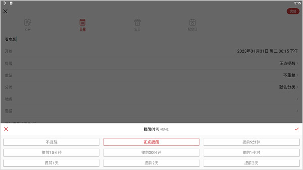 所有事项添加完成后,点击页面右上角的【完成】即可添加一个日程