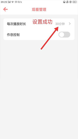 3、进入到观看管理界面后,再点击每次播放时长选项即可。